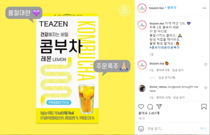 정국이가 마신 음료 회사 "TEAZEN"는 Instagram의 공식 계정에