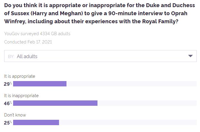 여러분은 서섹스 공작과 공작부인(해리와 메건)이 로열 패밀리와의 경험을 포함하여 오프라 윈프리에게 90분 동안 인터뷰를 하는 것이 적절하다고 생각하나요, 아니면 부적절하다고 생각하나요?