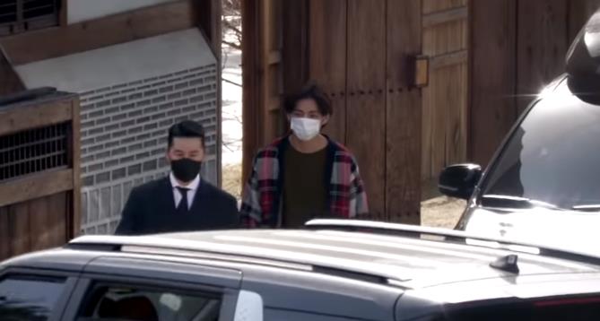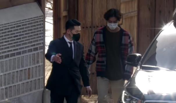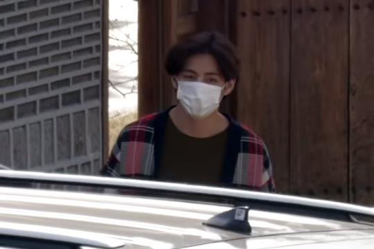 3월 17일(수) 오후, 서울시 성북구 성북동 한국가구박물관에서 진행된 tvN '유 퀴즈 온더 블럭' 이란 프로에 녹화를 마치고 방탄소년단(BTS) 뷔(V)가 퇴근하고 있습니다.