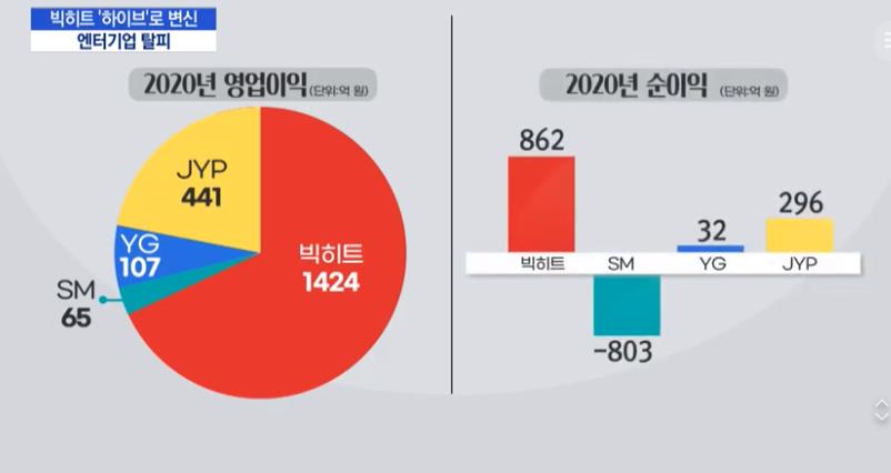 빅히트는 2020년 영업이익은 4사 엔터중 코로나임에도 불구하고 최고의 매출성과를 이뤘습니다.