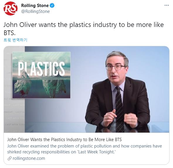 그래서 존 올리버는 플라스틱 산업이 BTS 처럼 되어야 한다고 말합니다.
