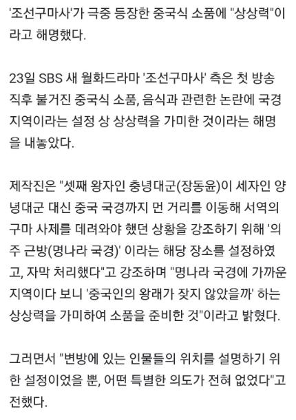 “명나라의 국경지역이다보니 제작진이 상상력을 가미해 소품을 준비한 것”이라고 해명했지만