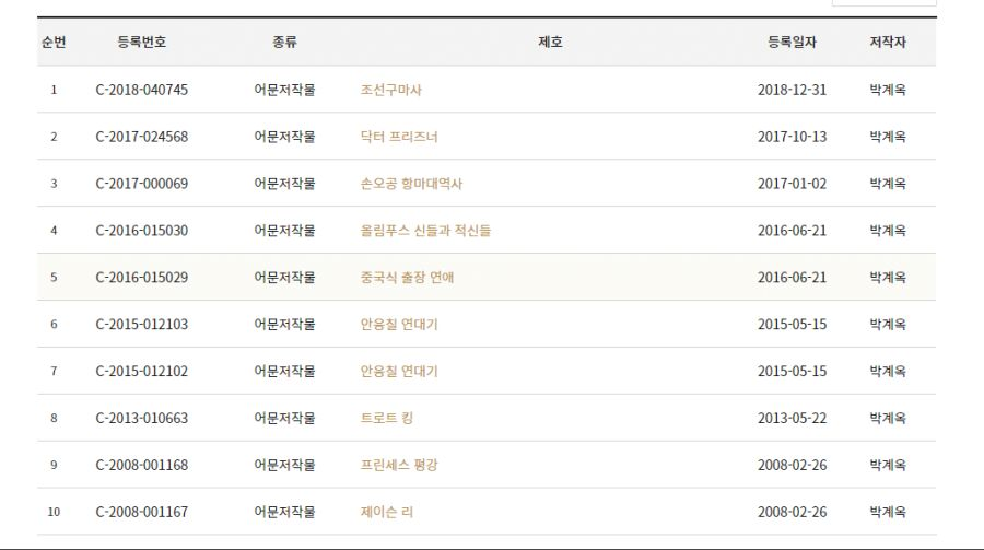 작가가 저작권으로 등록한 작품들