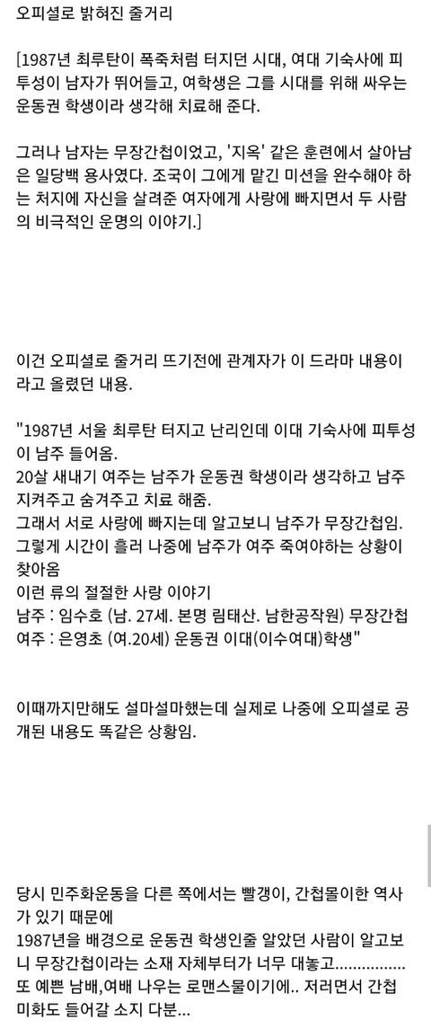 아직 드라마를 안봤으니 모르겠으나 자칫 잘못하면 한국 극우들 논리대로 민주화운동을 간첩으로 엮어 훼손되는 문제가 생길 수도 있다고 합니다.