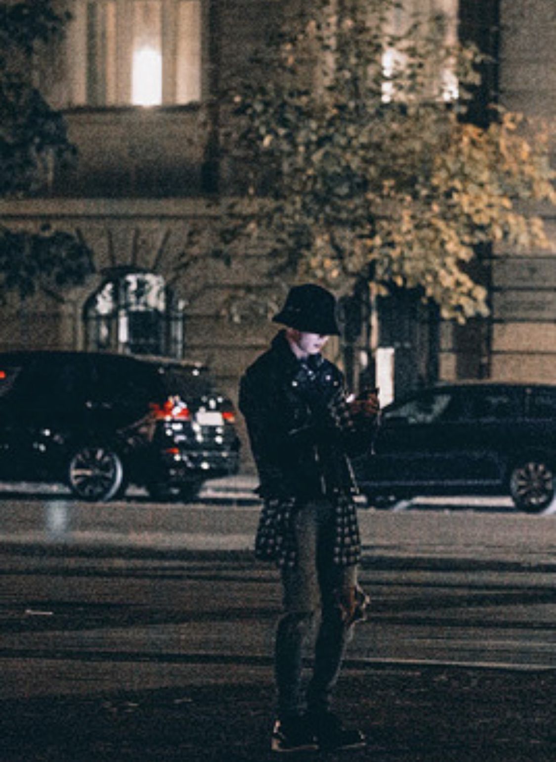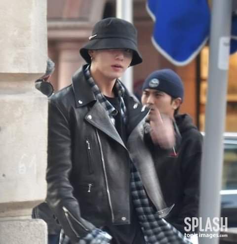 정국은 이날 페도라 모자에 찢어진 청바지 가죽 재킷을 입고 스탭들과 유럽의 밤거리를 활보하는 모습이었는데요.