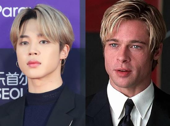 Pitt has been known as a handsome actor since his youth. Meanwhile, Jimin is now loved by many and has a big role in the world's most famous idol group. Fans are awed with the two world stars' similarities. pic.twitter.com/jVdo9zhC6n