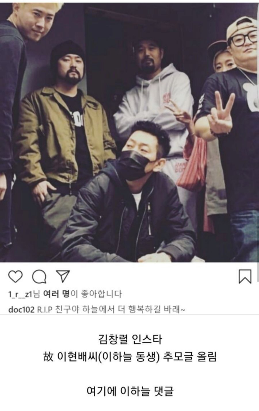 그중 같은 DJ DOC의 멤버인 김창열씨도 본인의 인스타그램에 이현배의 사진을 올리며 애도의 뜻을 밝혔는데..