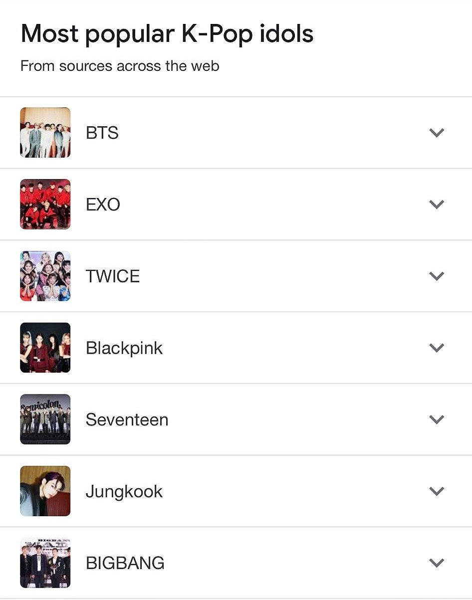 구글은 전 세계 최고의 검색 엔진이고 방탄소년단은 구글, 유튜브, 틱톡, 텀블러, 트위터 등 주요 플랫폼에서 가장 인기있는 케이팝 아이돌입니다.