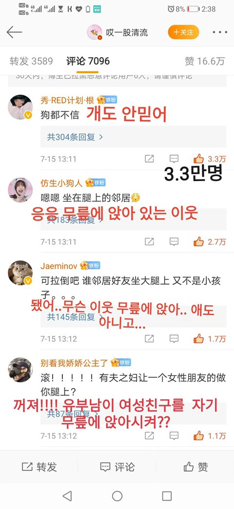 그 여성도 전혀 거부감 없이 우효광 무릎위에 앉아서 폰을 보고 있었다고 전했는데요..