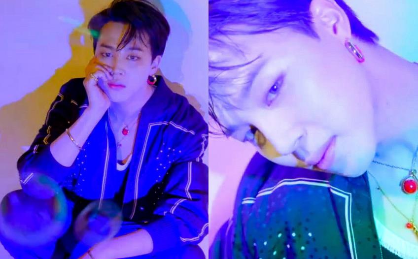 중간 앞머리를 올린 블랙헤어의 JIMIN은 명품 브랜드 생로랑의 재킷을 착용하고, 강렬한 레드 팬던트의 포인트를 살린 대담한 액세서리를 사용해 글로벌 패셔니스타의 모습을 보여주었다.
