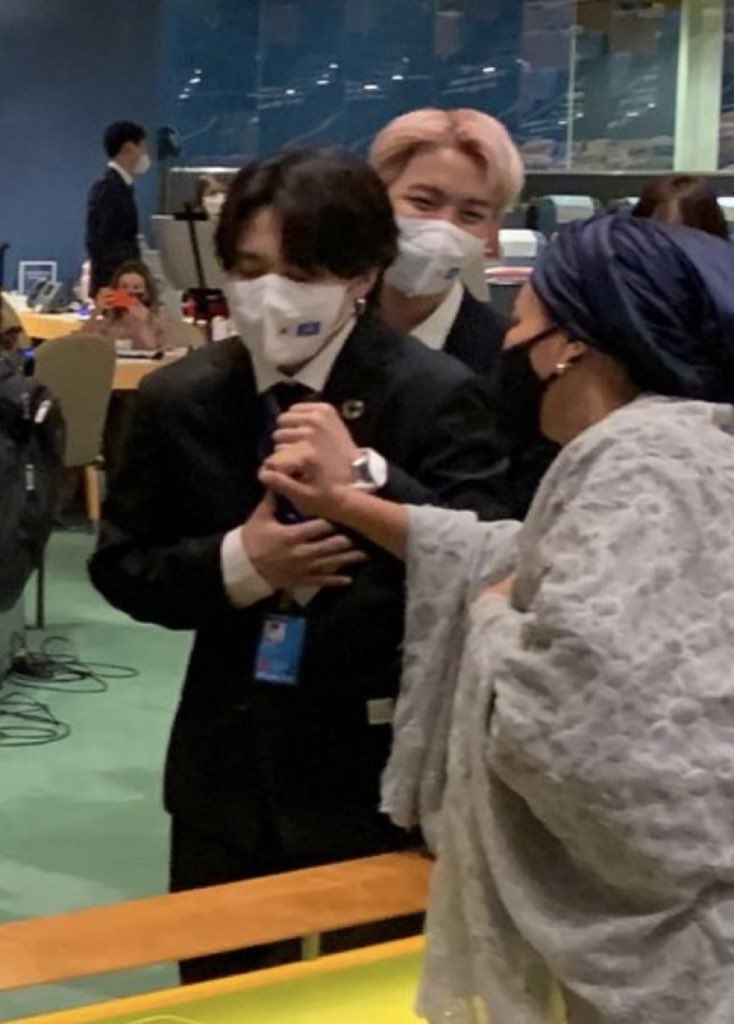 아미나 J. 모하메드 유엔 사무총장은 지민에게 격려하는 모습도 포착됐네요..ㅋㅋ