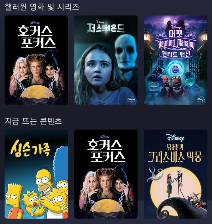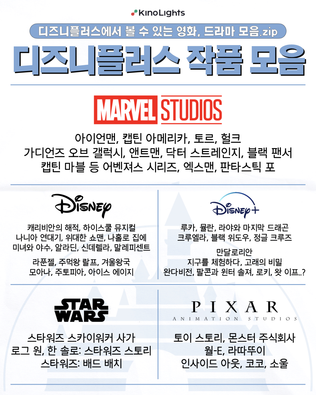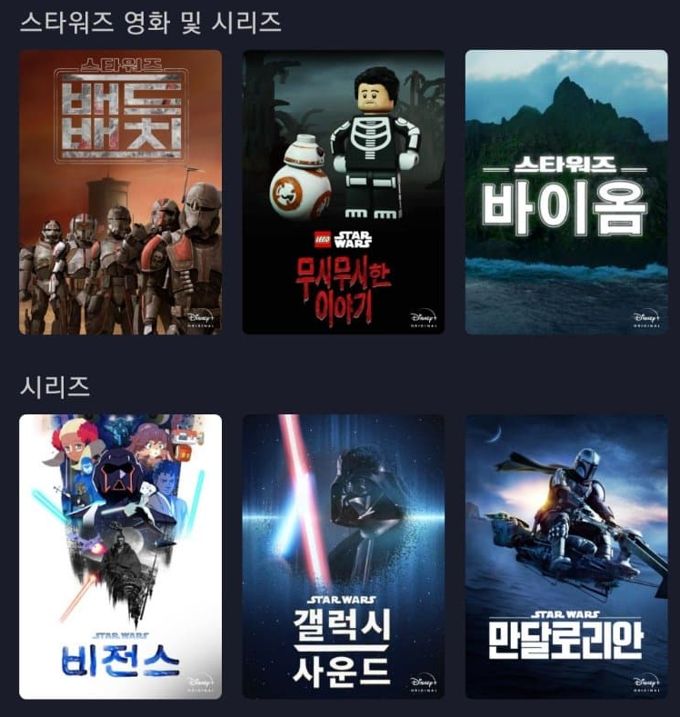 현재 디즈니 플러스에서 볼 수 있는 작품 이렇습니다.