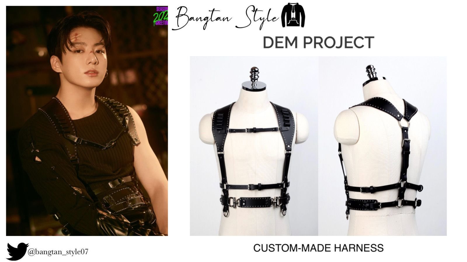 패션 계정인 트윗에 저 하네스 모양에 대해 올려놨는데 이것을 보고 사람들이 저것도 정국이 것만이 아니고 파는거냐고 묻는 반응이 많았습니다.