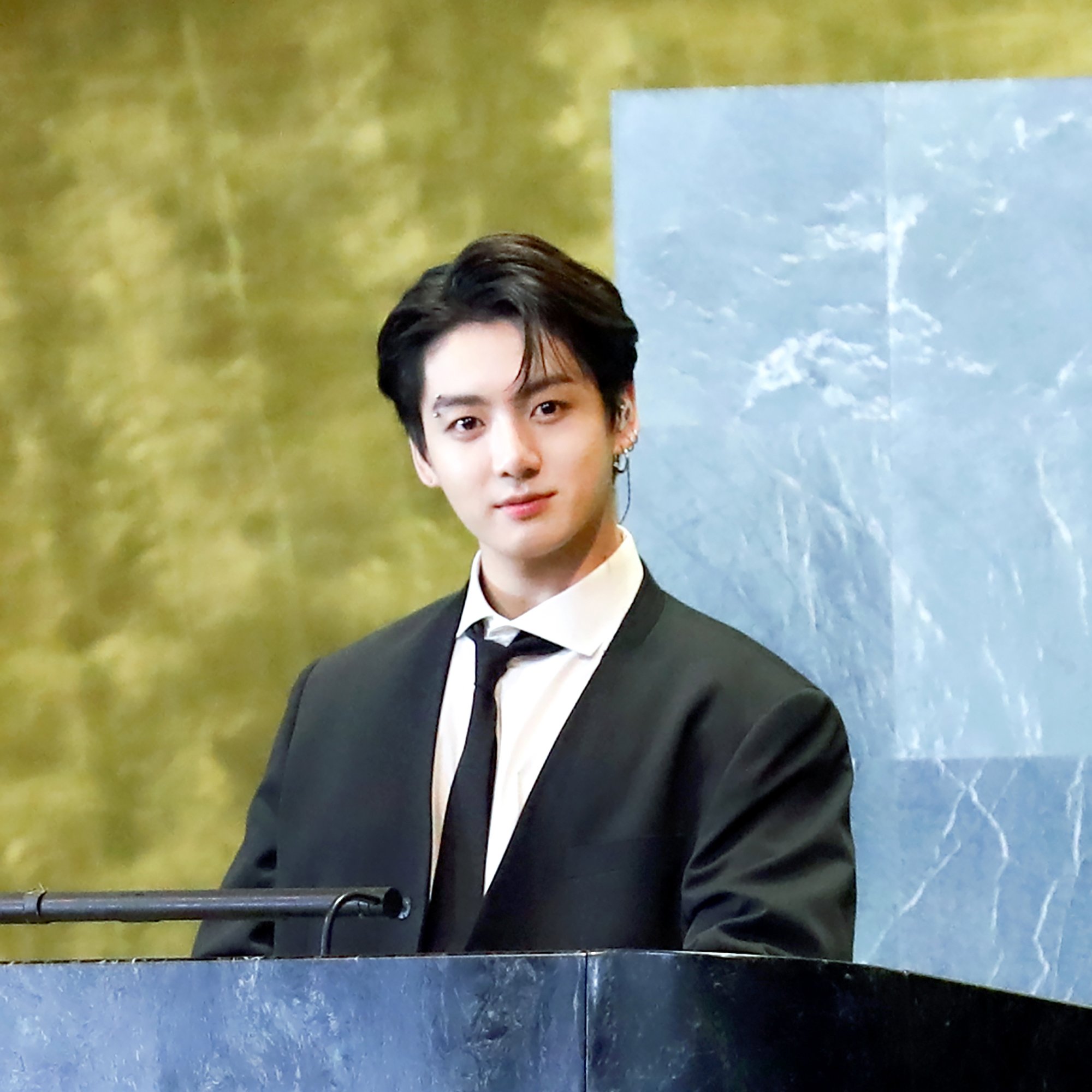 유엔에서는 또 반전 매력의 깔끔한 슈트를 보여줬습니다