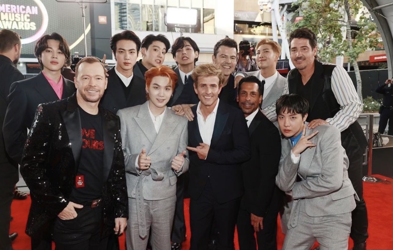 Confirmed: @NKOTB is part of the #ARMY! 💜 See more red carpet pics: https://t.co/bAMWVFxYY5#BTSxAMAs #MyUniverse #AMAs @bts_bighit pic.twitter.com/GSybFEGgrE