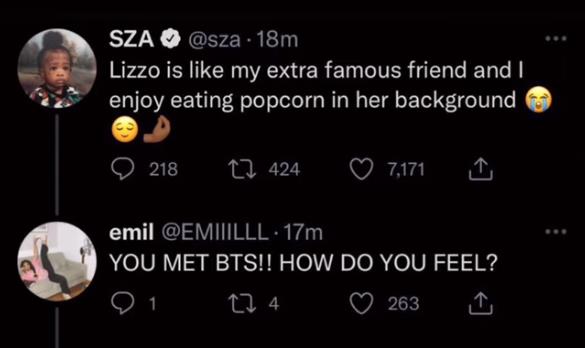 하지만 가수 시저(SZA)가 콘서트에서 방탄소년단 멤버들과 만난 느낌을 방탄소년단 팬들이 와서 묻자 트윗에서 대답을 했는데 이것이 문제의 발단이 되는데요