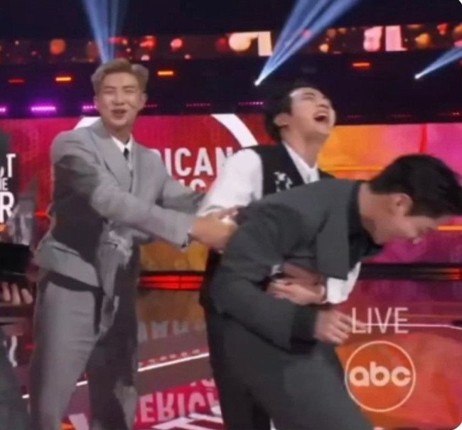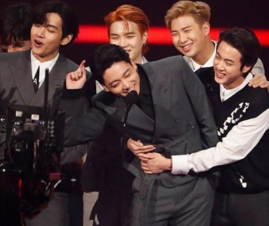 방탄소년단 정국이 AMA 수상소감 말하려다가 갑자기 멤버들 손에 끌려나간 이유에 대해 팬들이 폭소하고 있습니다.