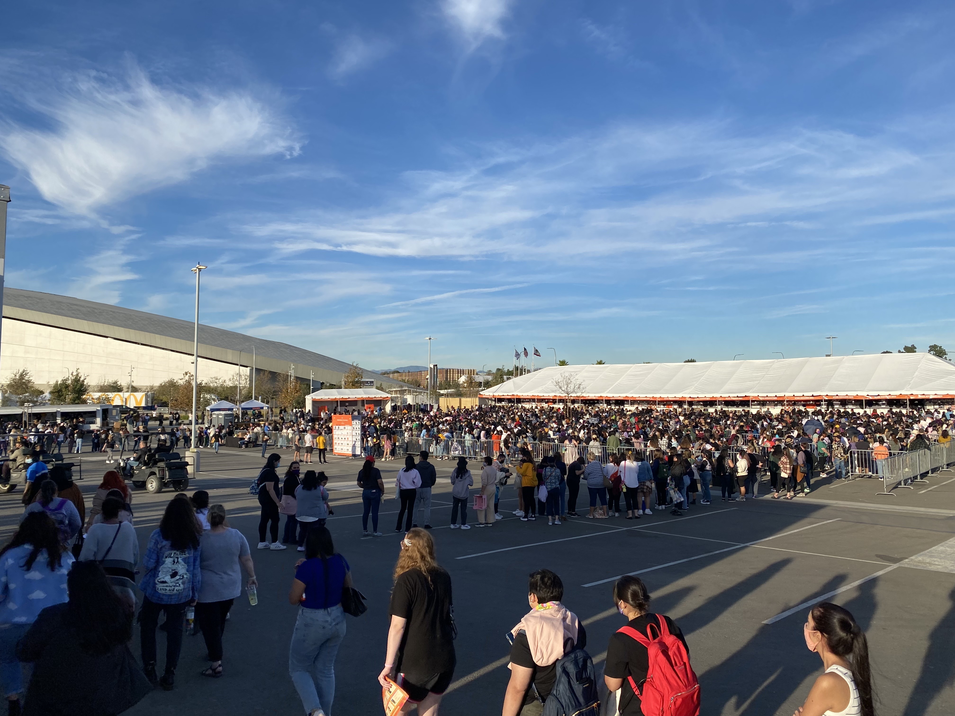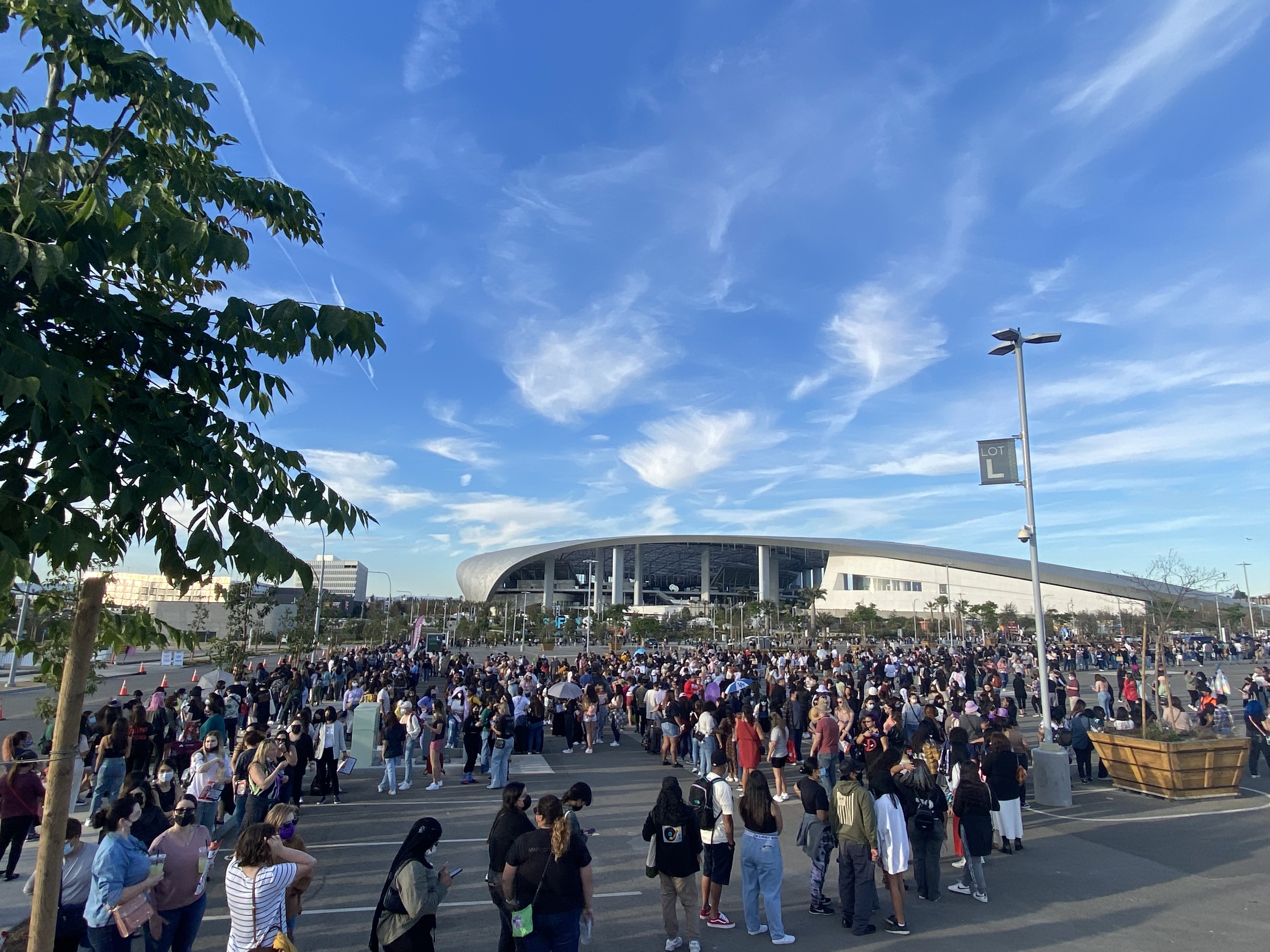 Ahead of #BTS' series of live in-person concerts in Los Angeles, fans are waiting in a long line to visit the official BTS merchandise shop opened at #SoFiStadium on Nov. 27, 2021 (KST). (Photos were taken by K-odyssey)https://t.co/2QxZ3CpYoE pic.twitter.com/Pw2ztw3VYB