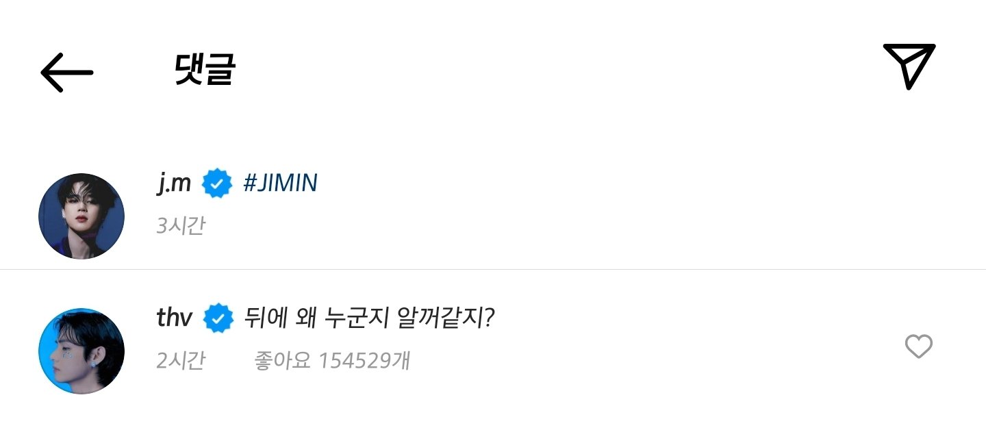 정국이 인스타그램에 다른 멤버들이 댓글도 달고 있는데요.