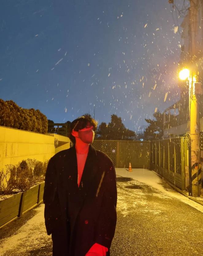 뷔는 설날에 눈이 내린다며 골목에 서서 근황을 알려주기도 했습니다.
