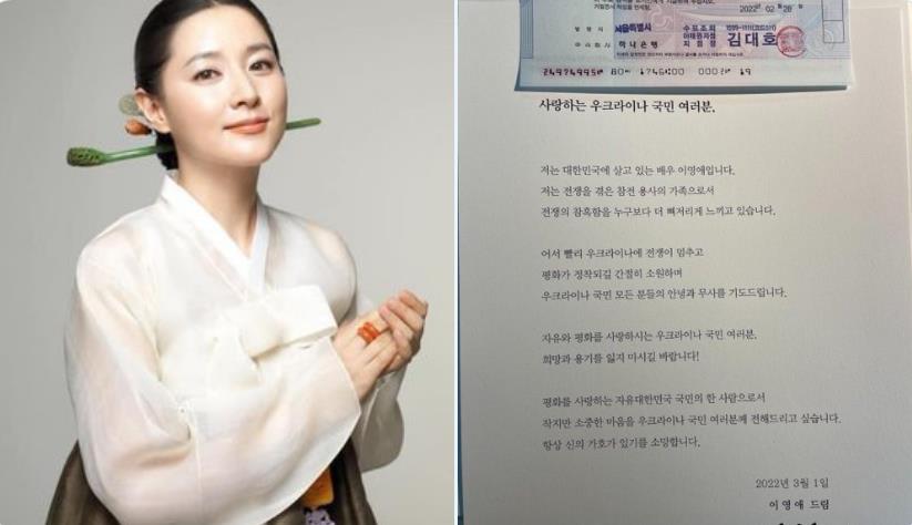 배우 이영애님이 우크라이나에 1억을 기부했습니다.