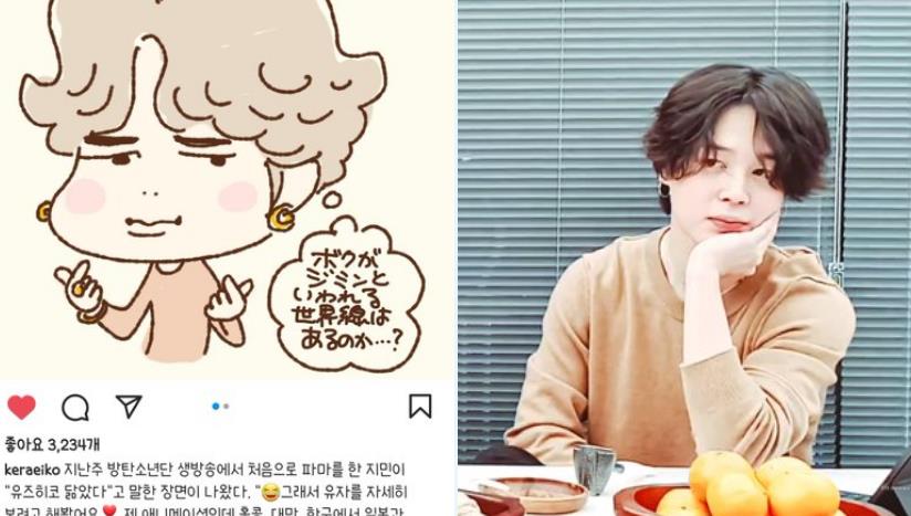 일본 국민 만화 '아따맘마' 작가 케라 에이코(けらえいこ)씨가 자신의 SNS에 지민을 닮은 그림을 공개해서 화제입니다.