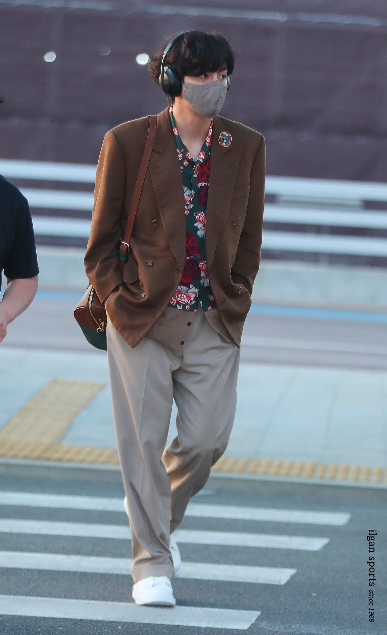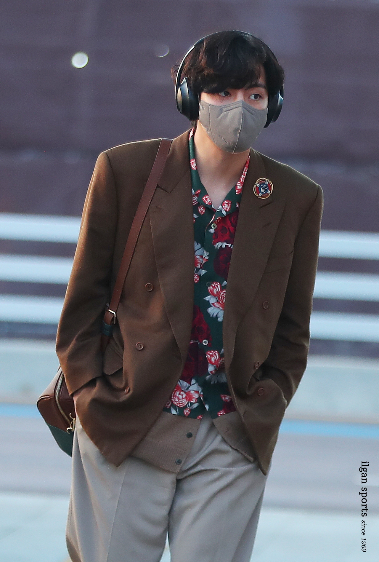 그래미 어워드를 위해 미국으로 출국하는 뷔의 모습