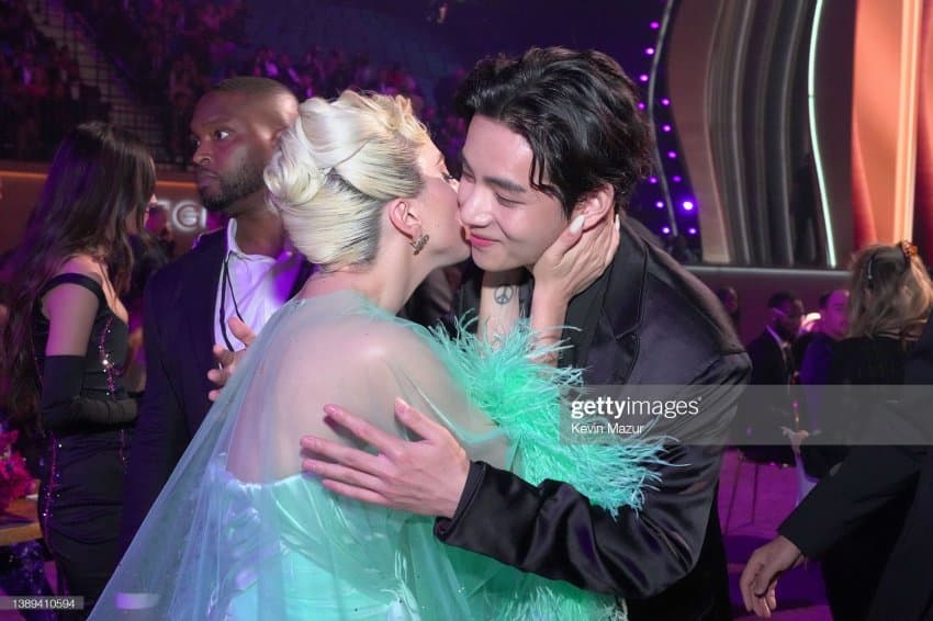 제64회 그래미 어워즈 본 시상식에서 만난 레이디 가가와 방탄소년단 뷔