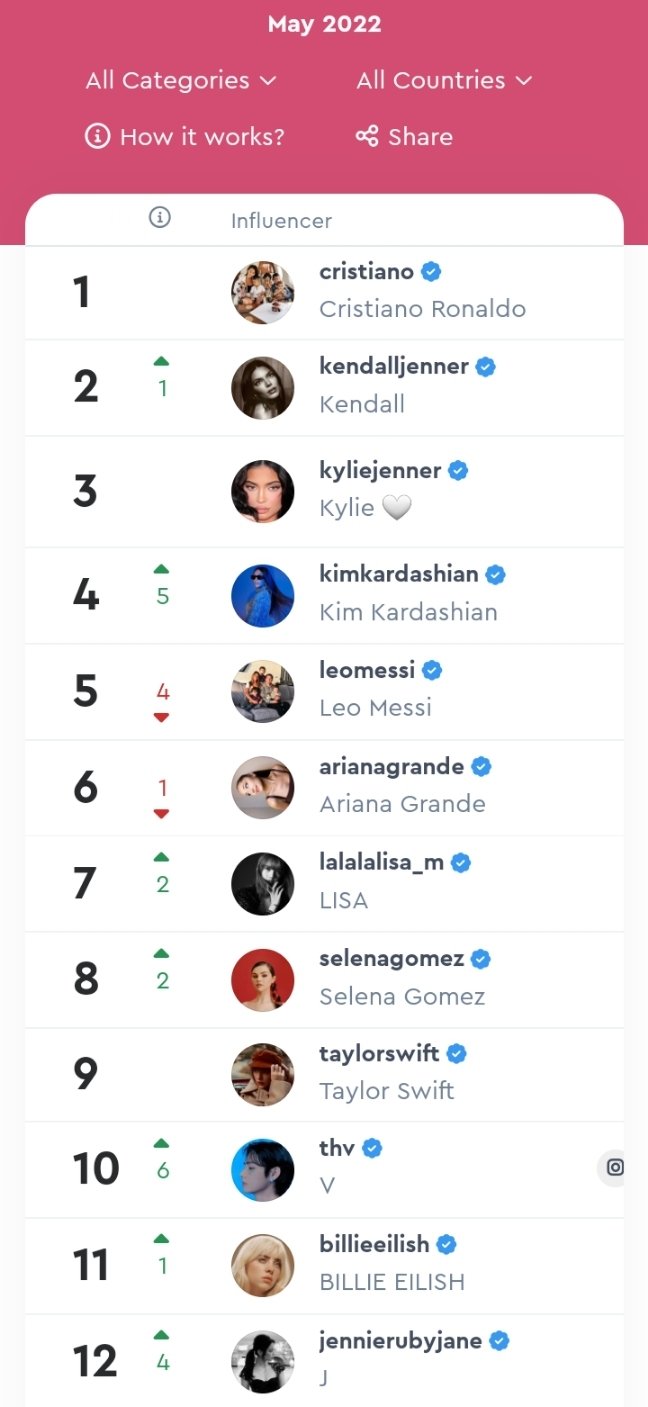 📊 Most Influential Music Artists on Instagram Worldwide this month (May 2022): 🌍