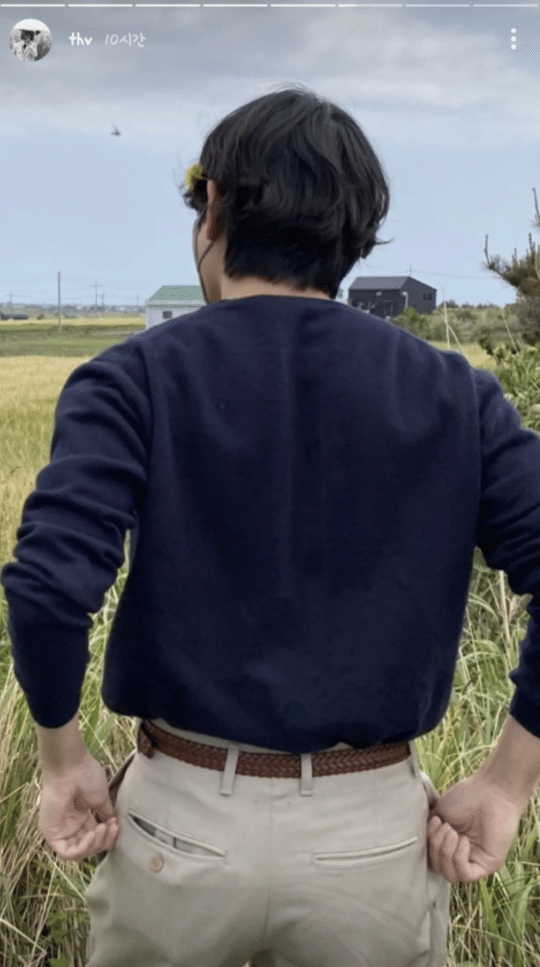 뷔도 최근 제주도 사진을 본인의 인스타그램에 올렸는데 누가 뒤에서 찍어준 사진인거 같습니다