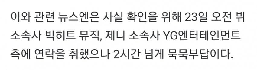 YG엔터테인먼트는 드릴 말씀이 없다고 밝히기도 했습니다.
