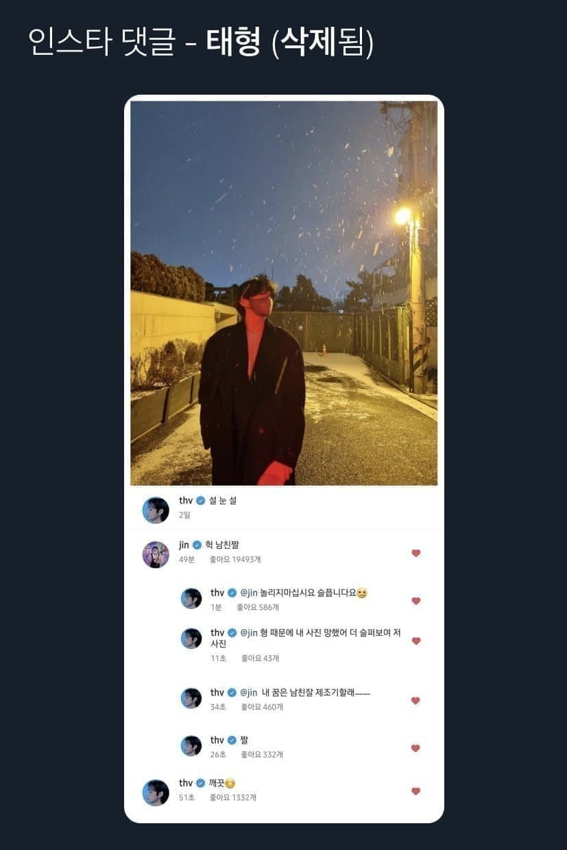 이후 뷔의 인스타 사진들도 같이 화제가 되고 있는데..