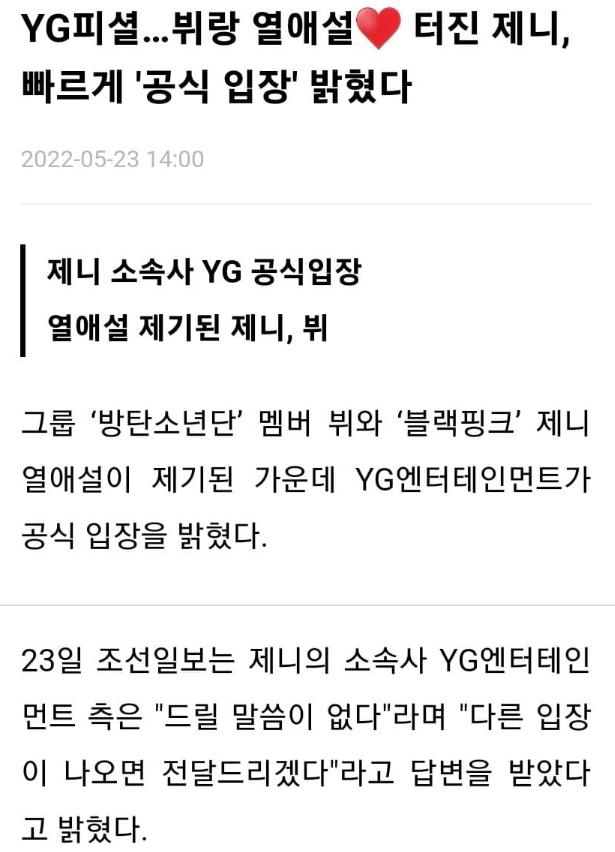 뷔와 제니 열애설 이후 팬들의 사실을 밝혀라는 입장에 하이브와 YG 엔터의 공식 입장은 전혀 내놓지 못하고 있는 실정인데요.