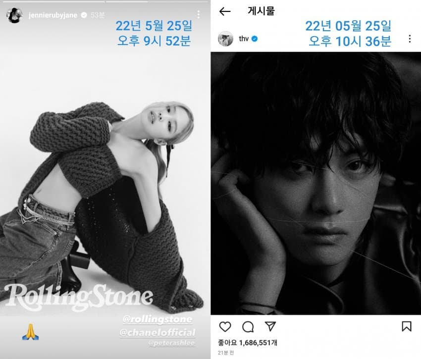 | 뷔와 제니의 열애 의혹으로 과거 인스타그램 화제 (0) | 2022.05.25 |