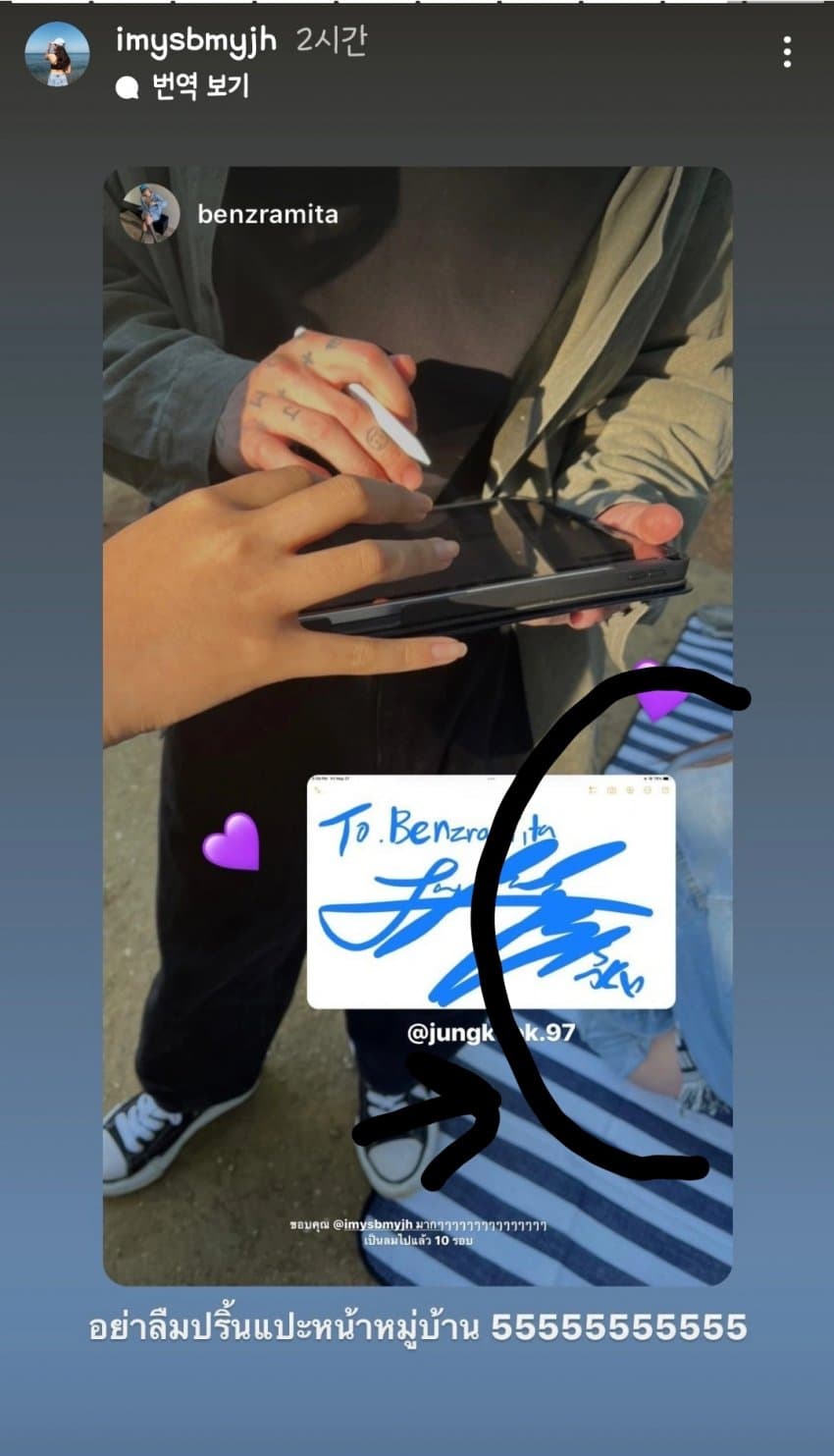 돗자리를 들고 자유롭게 음악을 감상하는 곳이라 한국인 뿐 아니라 외국인들까지 나와서 음악을 감상하고 있는데 이 날 정국을 만난 태국인이 정국 사인을 받은 썰을 풀었습니다.