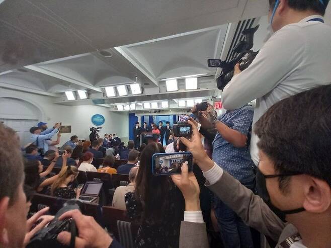 트럼프 행정부때부터 백악관을 출입했던 미국 기자들도 백악관 브리핑실에 기자들이 이렇게 빽빽히 가득찬 모습은 바이든 정부에서 처음있는 일이라고 하는데요..