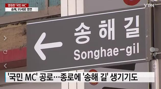 송해님은 35년간 국민들과 기쁨과 슬픔을 함께한 공로로 종로에 '송해길'이 생기기도 했습니다.