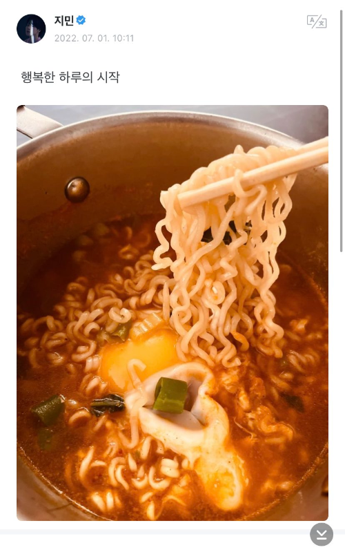 7월 1일 아침으로 라면을 먹는다는 근황을 알렸는데요.