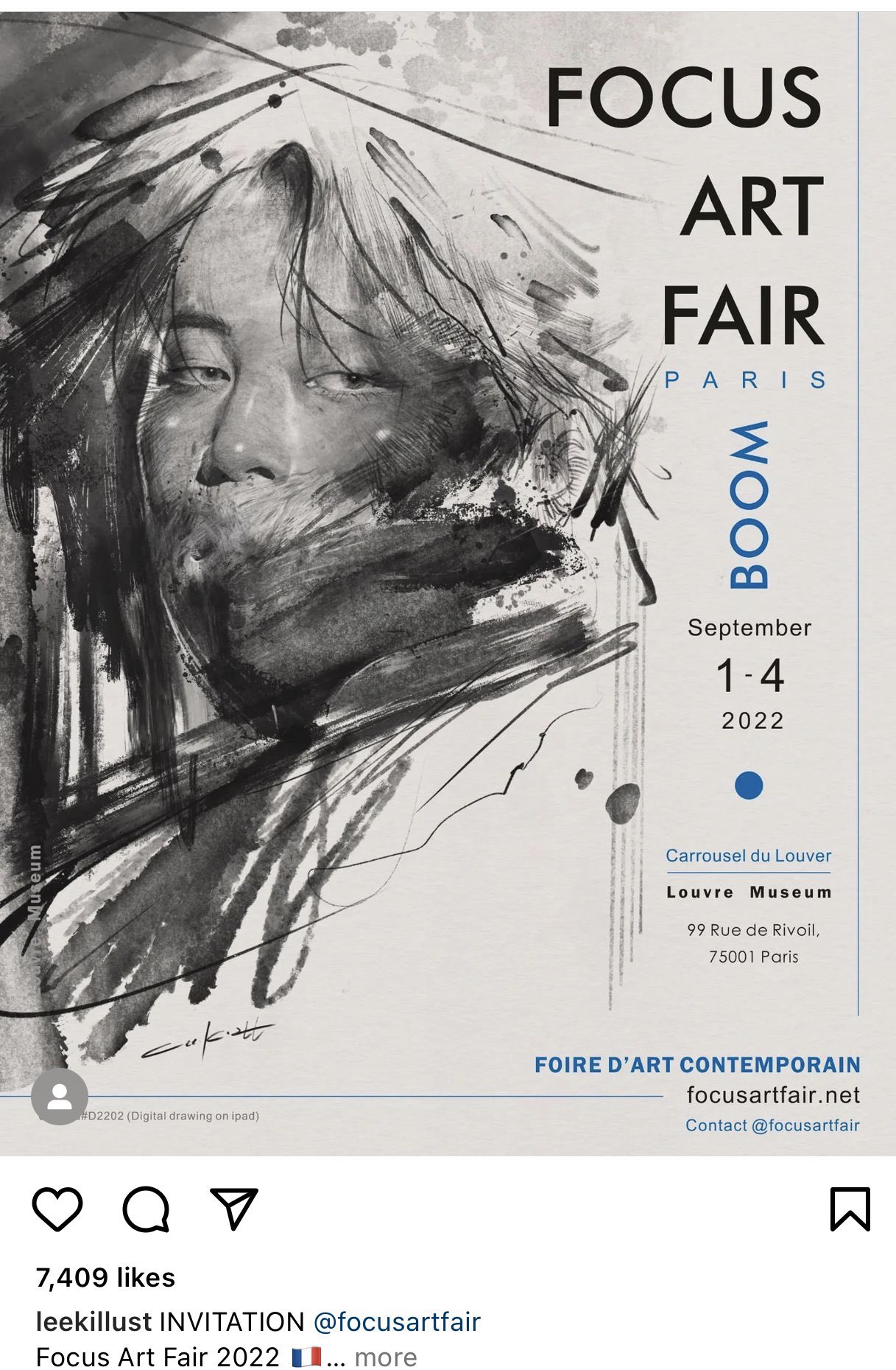FOCUS Art Fair 2022 : 9월 1일부터 4일까지 프랑스 파리 카루젤 드 루브르(Carrousel du Louvre)에서 개최되는 아트페어에 한국 작가 리케이(Lee.K )님이 그린 지민 초상화가 전시되고 있습니다.