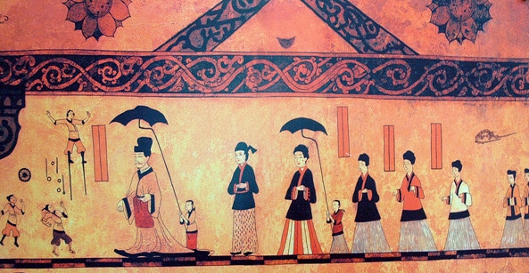 아래는 삼국시대 벽화에 그려진 옷이죠. 백제가 기원전 18년입니다. 삼국이 거의 비슷한 옷을 입었다고 합니다.