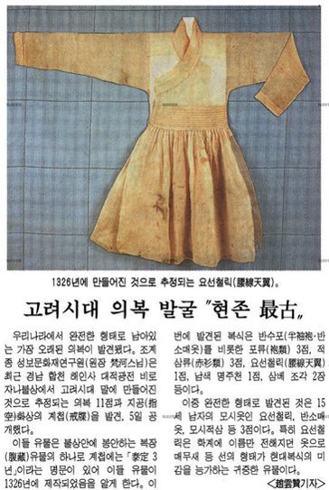 아래는 조선초기 세종 때 양반 귀족 여성의 미라가 발견돼서 출토된 옷입니다.