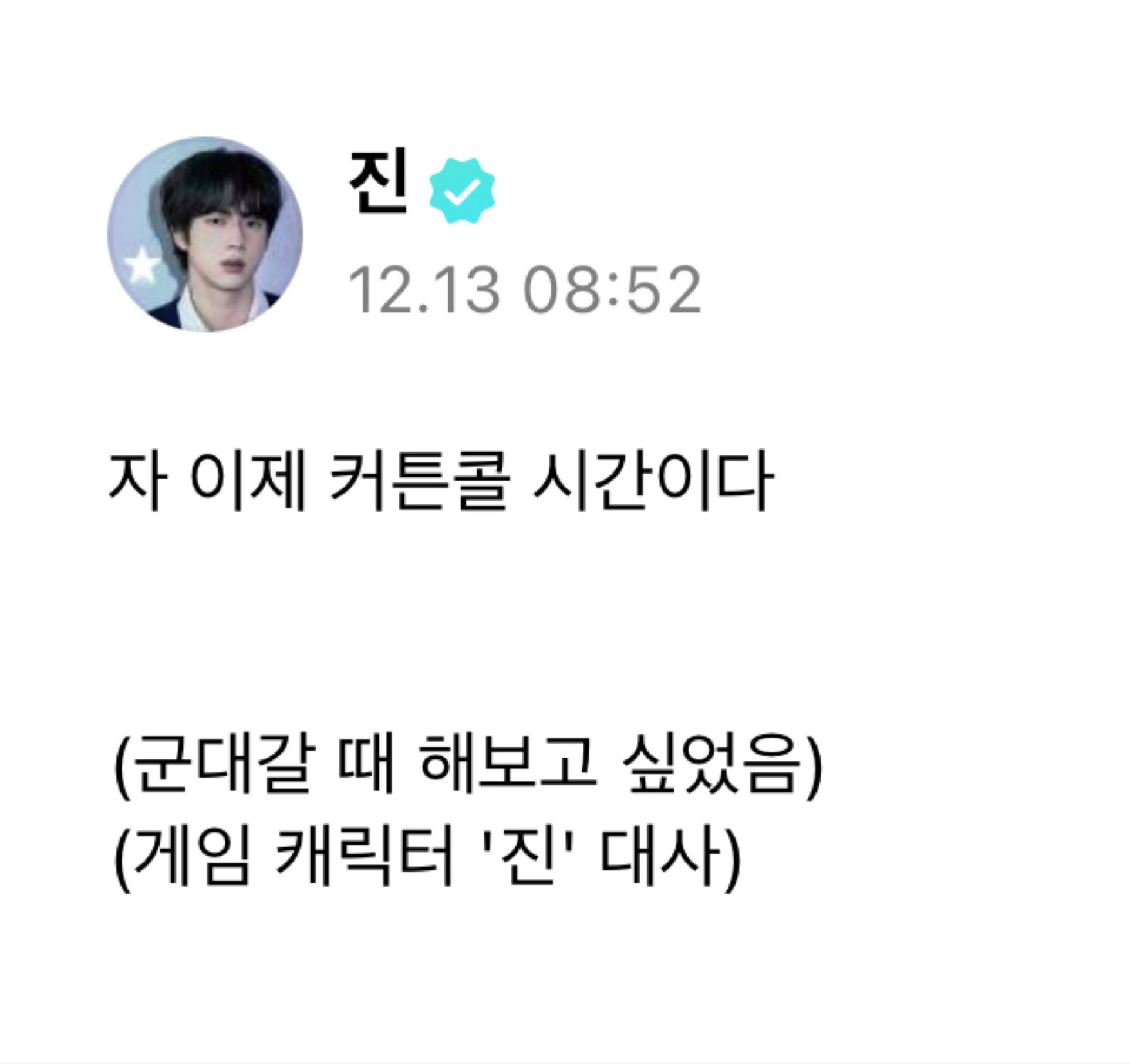 진은 군대가기 전 이런 글을 남겼습니다.