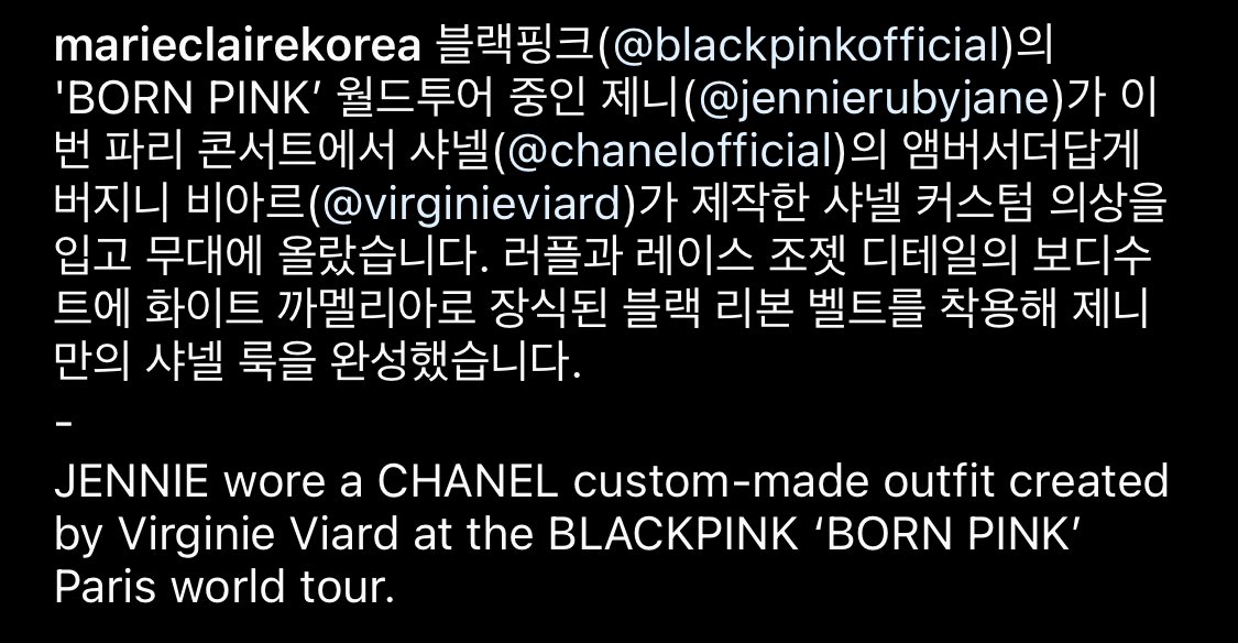 명품 패션 샤넬이 제니만을 위해 특별 의상을 제작했습니다.