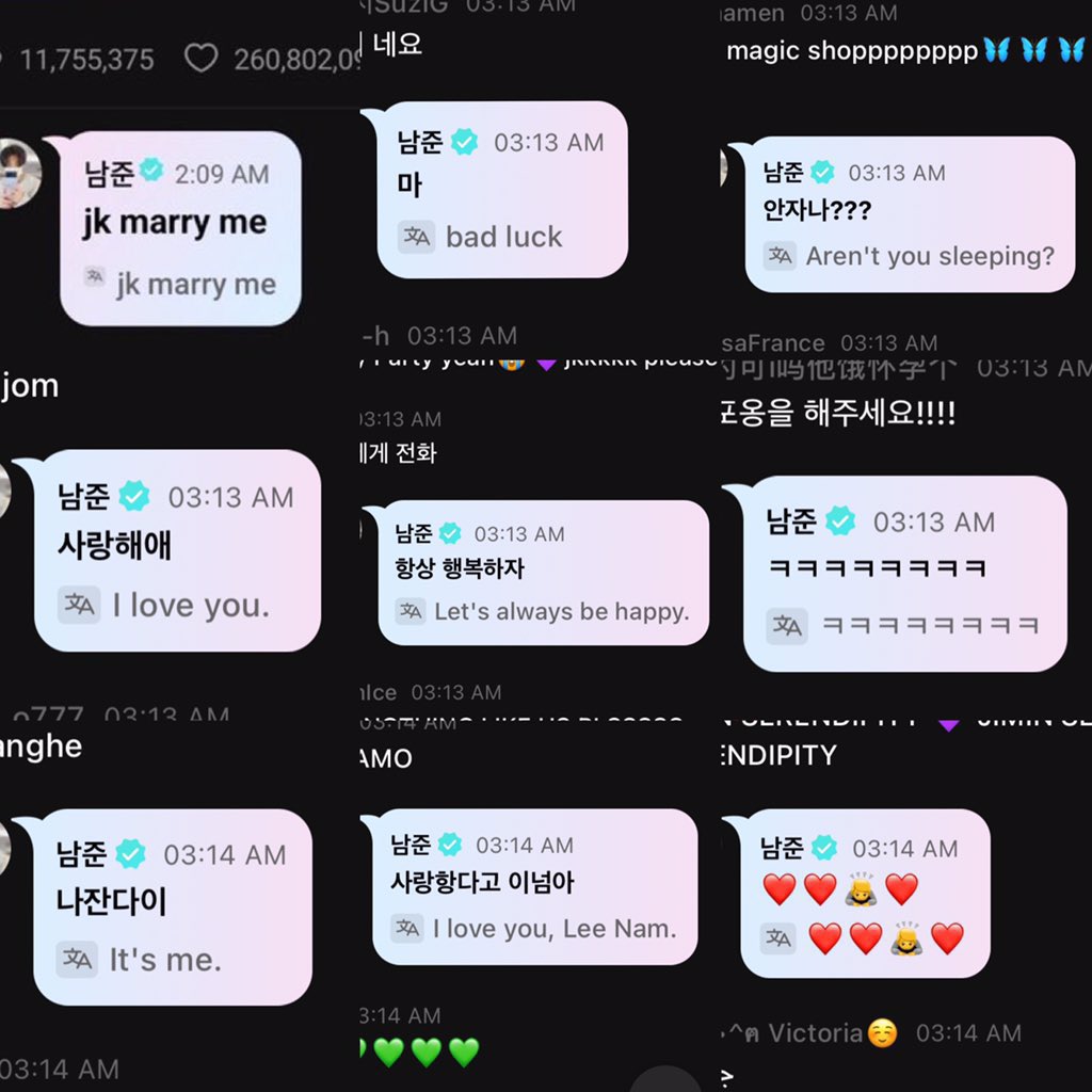 RM도 들어와서 라이브 챗에 남겼네요.