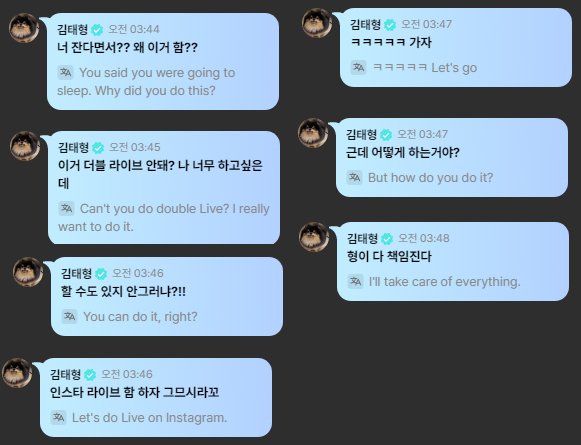 새벽에 정국은 팬들과 소통하고자 위버스 라이브를 켰는데 뷔가 라이브로 들어왔습니다.