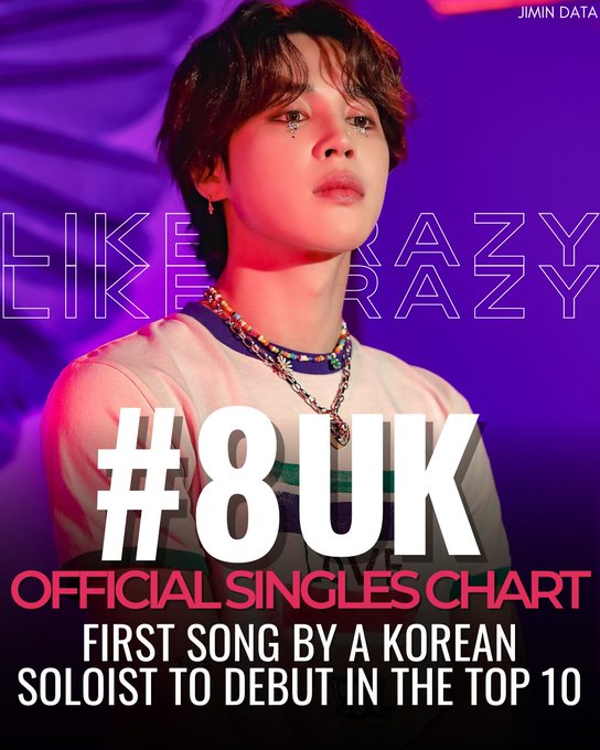 영국에서 방탄소년단 곡도 3위가 최고 성적인데 지민이 솔로로 8위에 등극했습니다.
