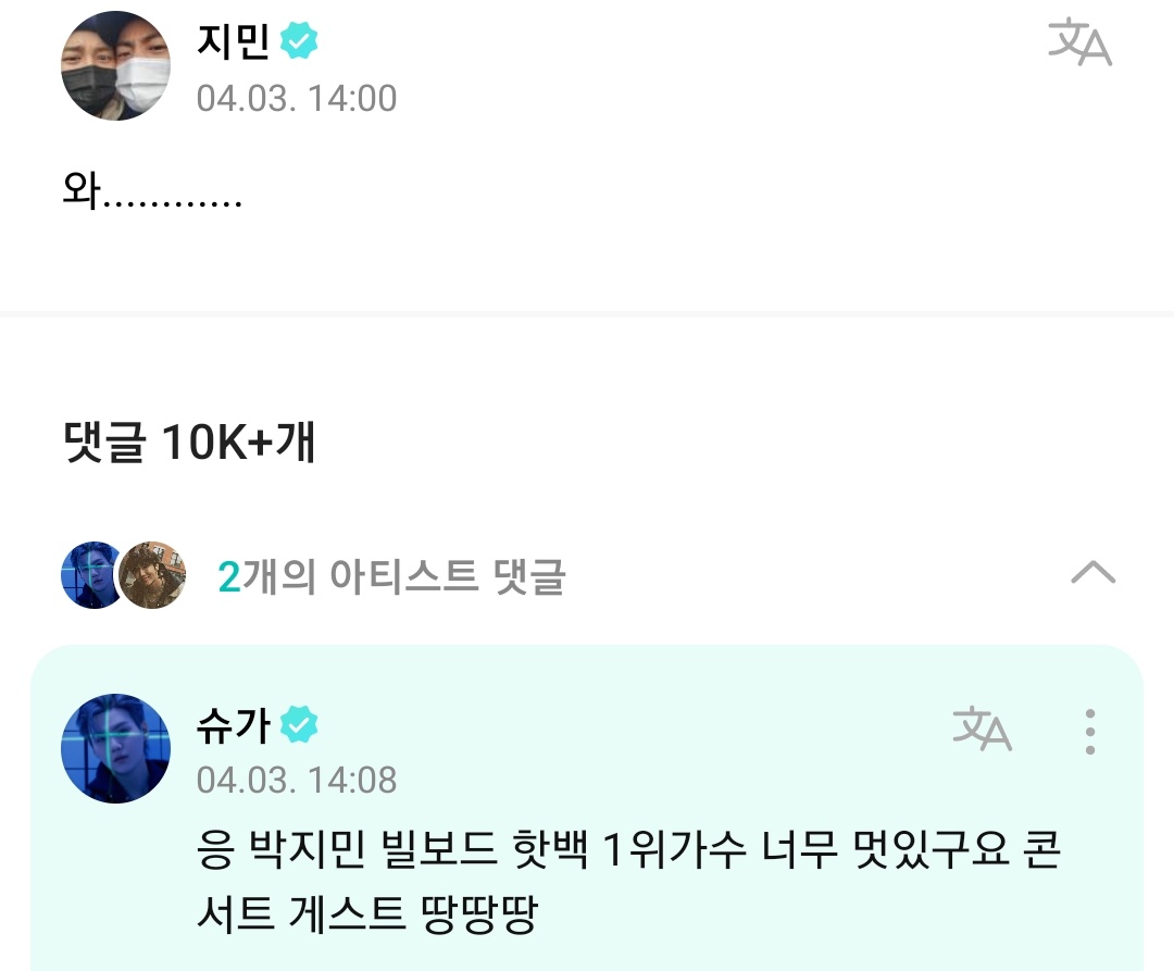 230404 Hot 100 1위 지민 라이브 + 호비 댓글 (3)
