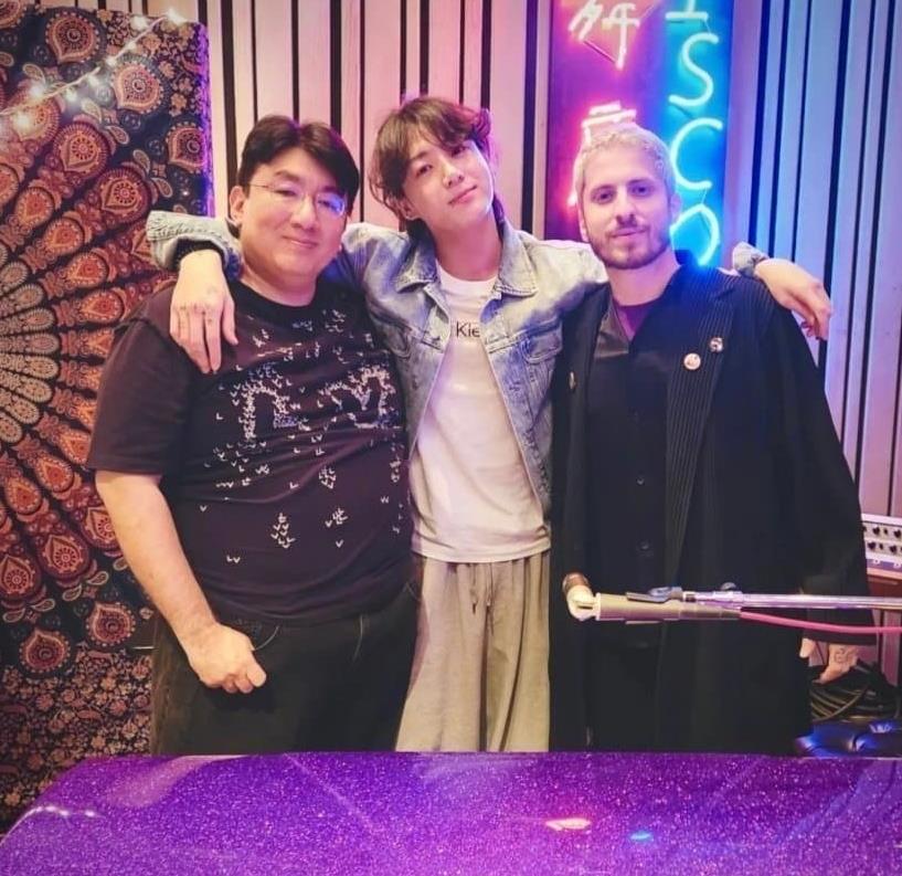 방시혁 PD가 정국과 유명 음악 PD인 앤드류와트와 찍은 사진을 공유했습니다.