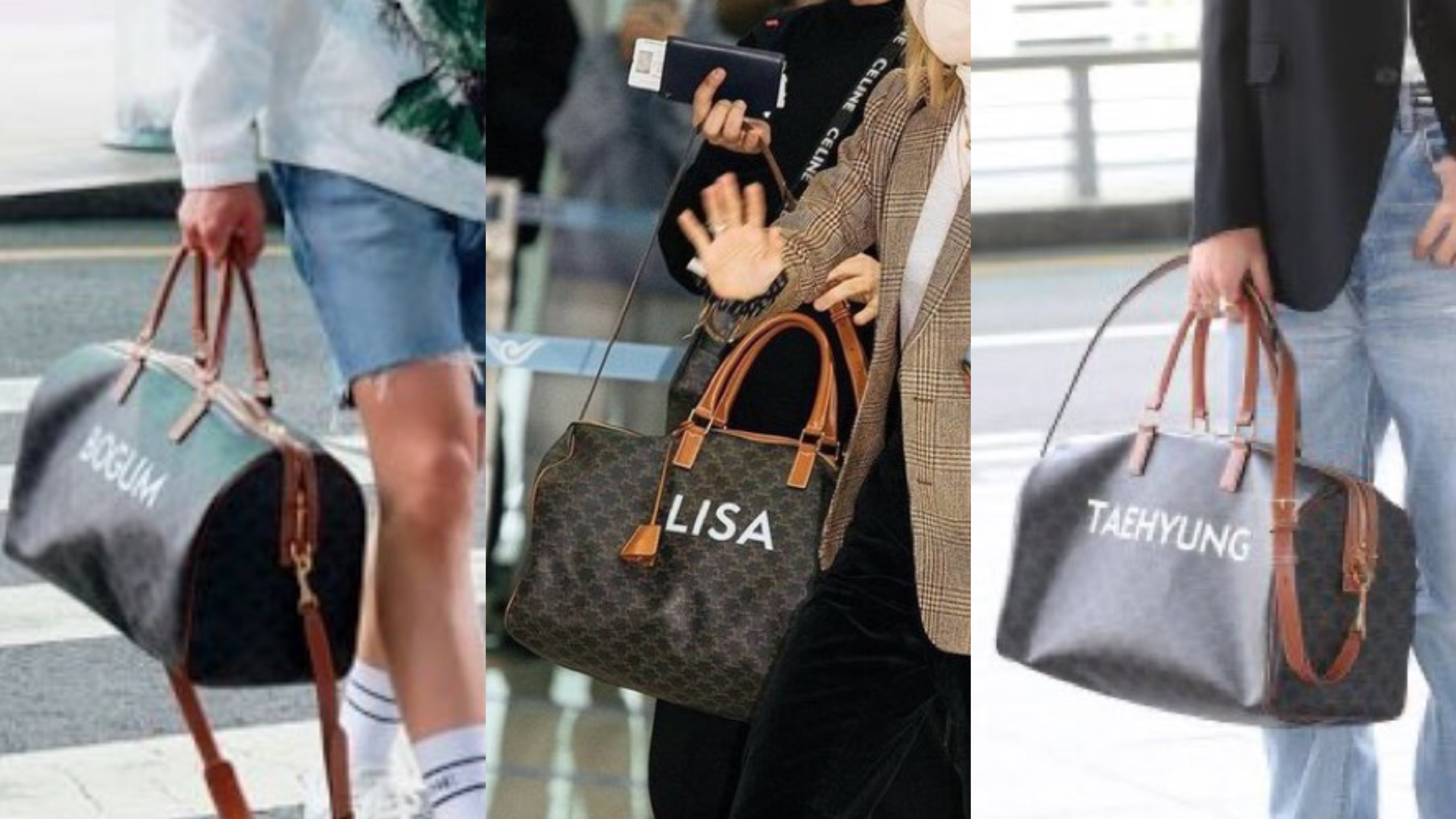 셀린느 앰버서더인 이 세명은 자신의 이름이 찍힌 가방을 선물 받았네요.